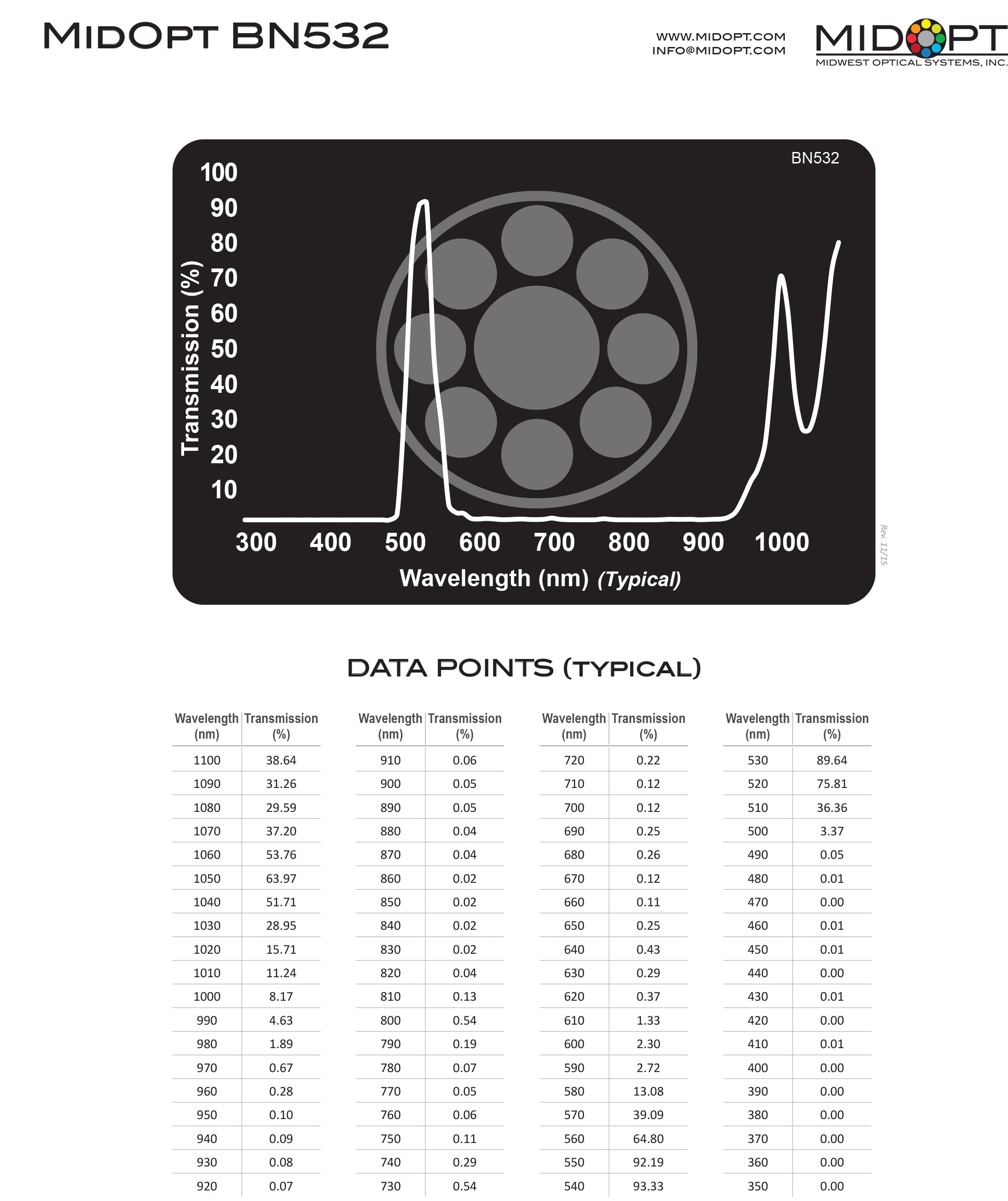 Narrow Green Bandpass Filter, 525-550nm - MidOpt BN532