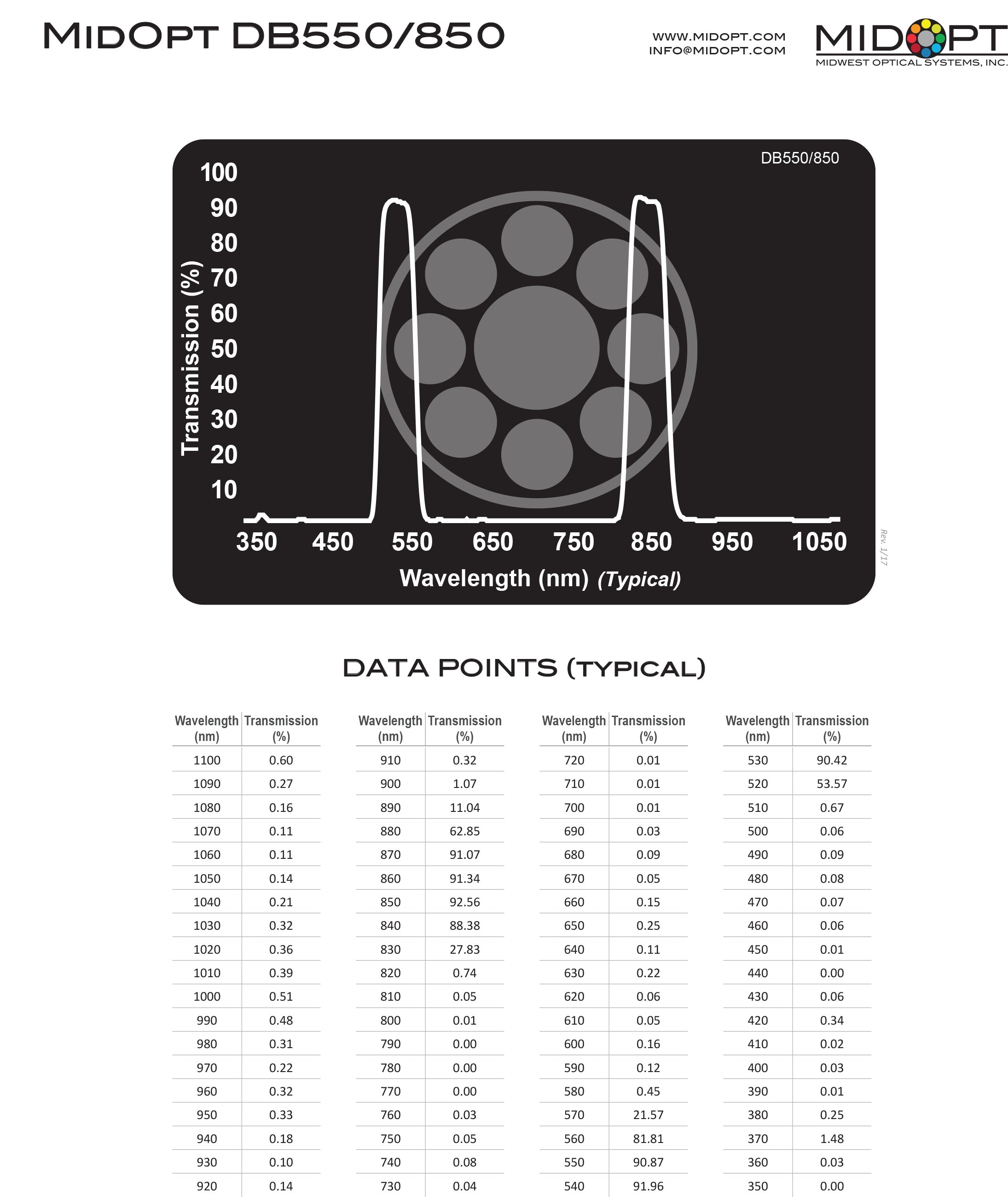 Dual Bandpass Green + 850nm Near-Infrared (IR) Filter - MidOpt DB550/850