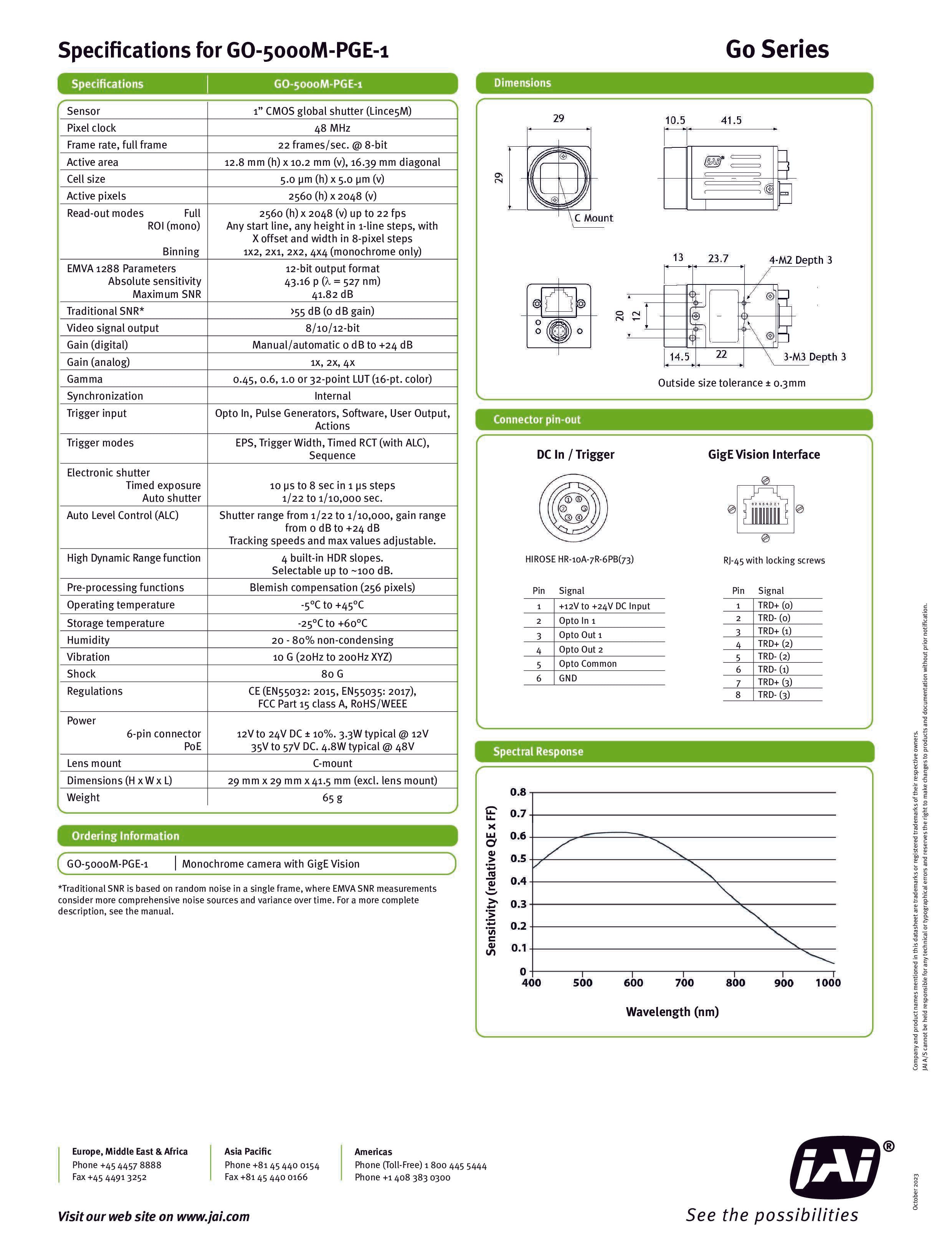 Compact 5MP Area Scan Camera, UV Imaging, GigE Interface, Go Series - JAI GO-5000M-PGE-1
