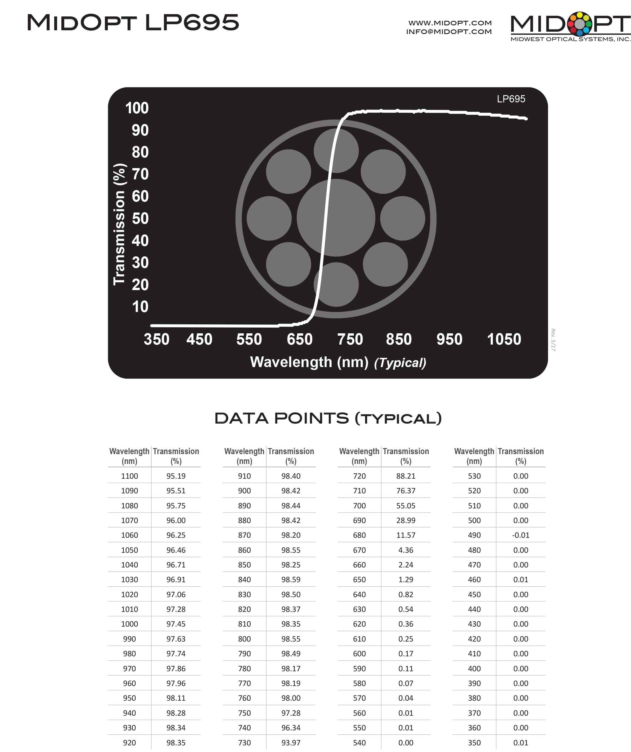 Near-Infrared (IR) Longpass Filter, 715-1100nm - MidOpt LP695