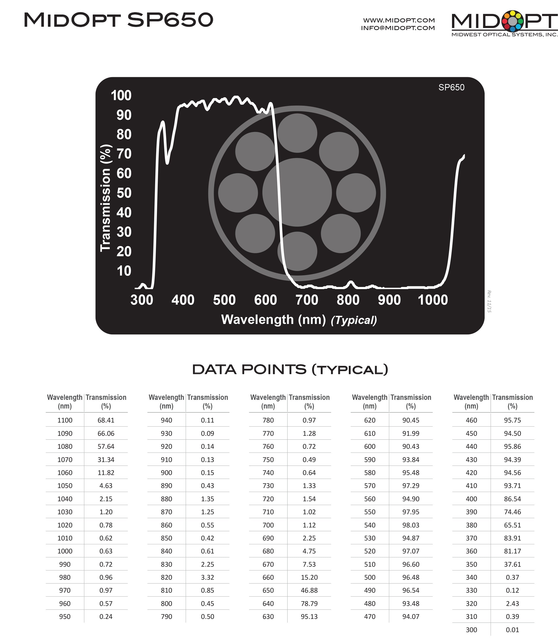 Near-Infrared (IR) / Mid-Red Dichroic Block Shortpass Filter, 400-640nm - MidOpt SP650