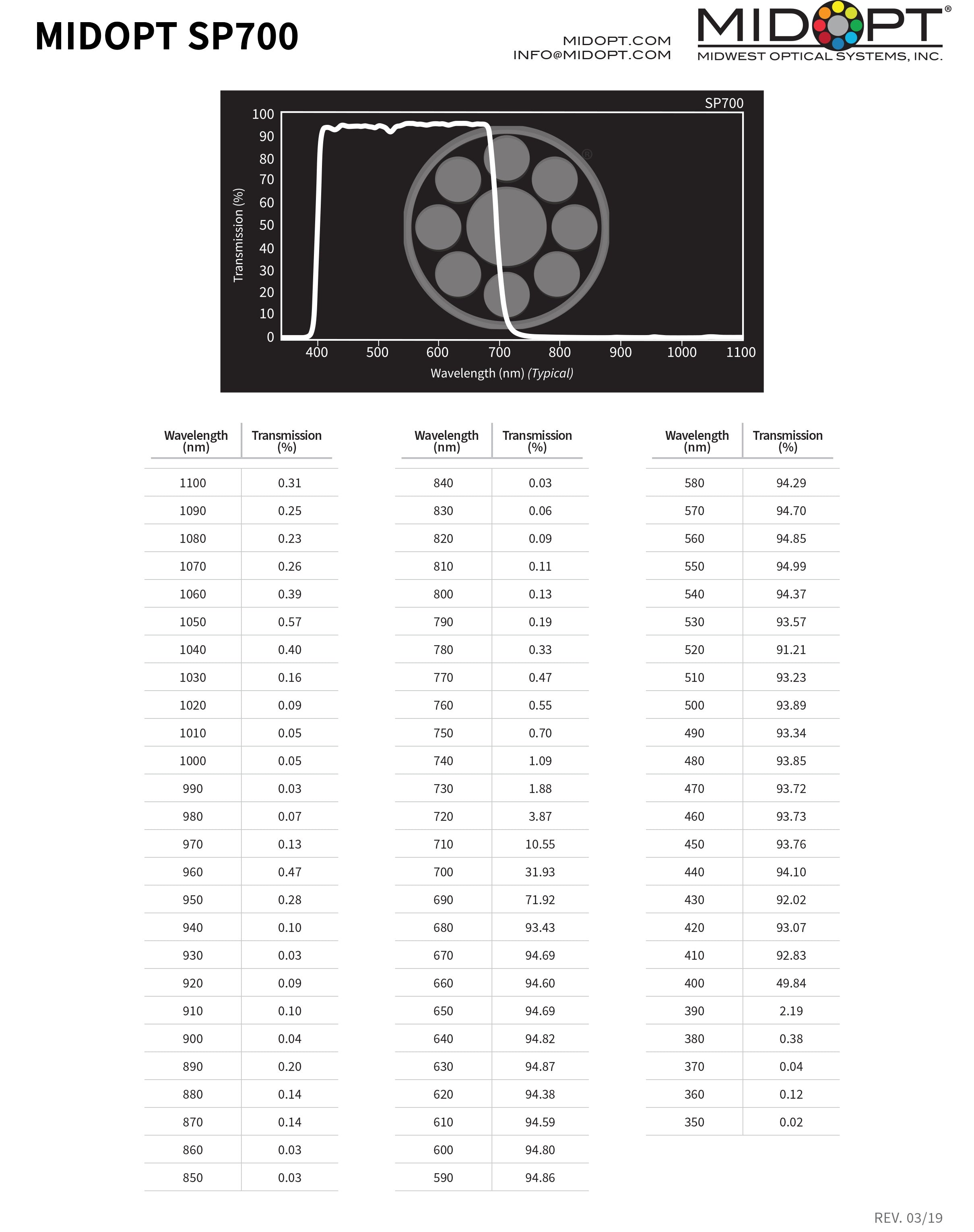 Near-Infrared (IR) / Ultraviolet (UV) Block - Visible (VIS) Shortpass Filter, 405-690nm - MidOpt SP700